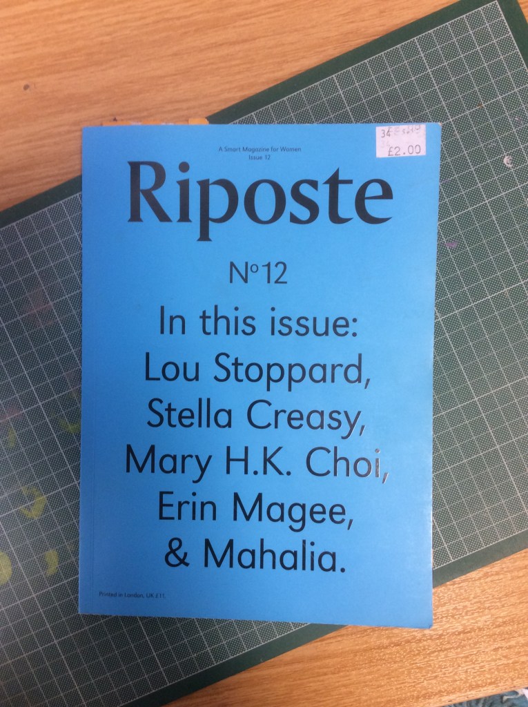 I went to Bristol a few weeks ago and in a charity shop I found some design magazines; one that I found was one called Riposte, (I am still not sure what exactly the magazine is about! *shoulder shrug) but it has some lovely typefaces in it so naturally I had to buy it for £2!