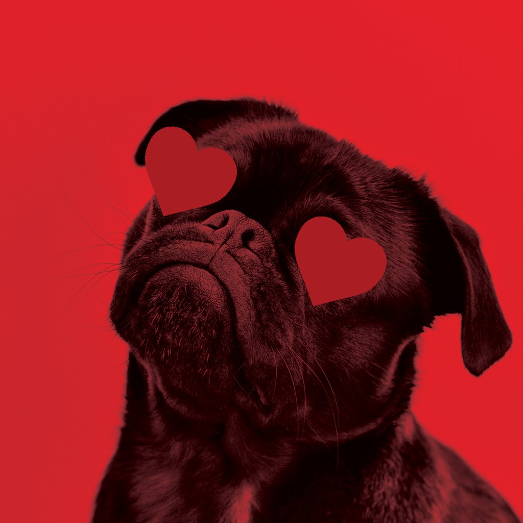 I decided to use very little/if any wording on my images because I wanted the images to speak for themselves and hold their own narrative so simply for this design I placed a couple of love hearts over his eyes to show a loyal love and that was that for this image!