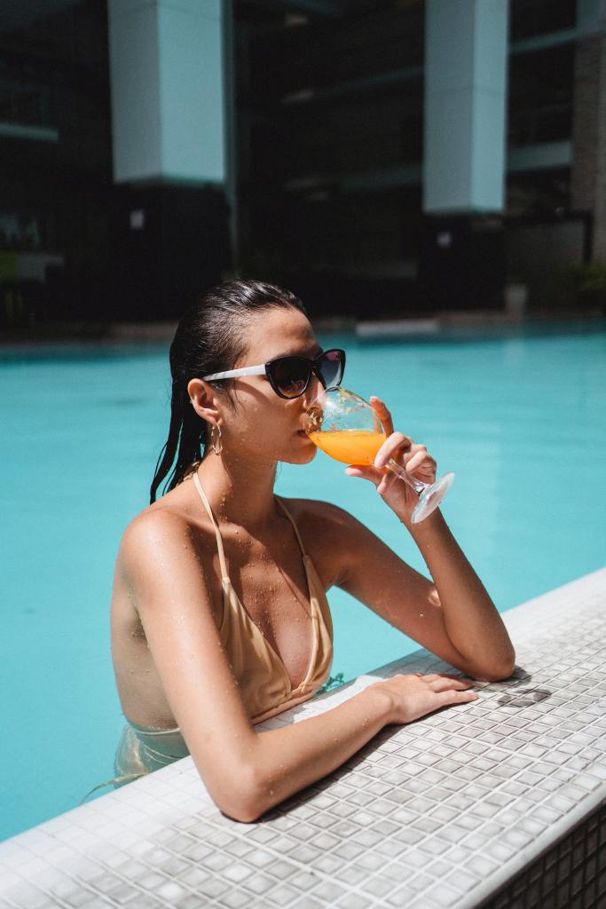 In my original thoughts and initial sketches I had the idea of a 1950s housewife living her surburban dream drinking a glass of Orange juice that they have reveled in planting and growing. Once again though I struggled with finding a copyright free image of a 1950s housewife so instead I put a modern twist on it when I stumbled upon a woman drinking a glass of Orange juice in a swimming pool – it summed up the materialistic, blasé feel of the suburban people in the poem; the “Bourgeis-ness” of the people.