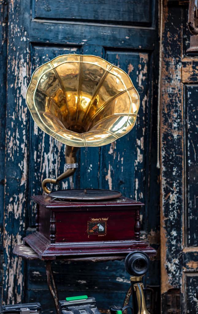 There is only one image of a record player that sits in my mind and that’s like one of the big HMV Gramophones! Buying a record player in this poem signifies the materialistic side of the people again – they are living in suburban hell but cover their angst and worries with materialistic objects such as the record player. The one and only perfect record to play on this would be Madonna and Material Girl! I decided to put that modern twist into the image and include the cover of the Material Girl vinyl on the front of my image. First though I needed to find a record player! – I found a free photo of a record player on Pexels to cut around in Photoshop and use:
