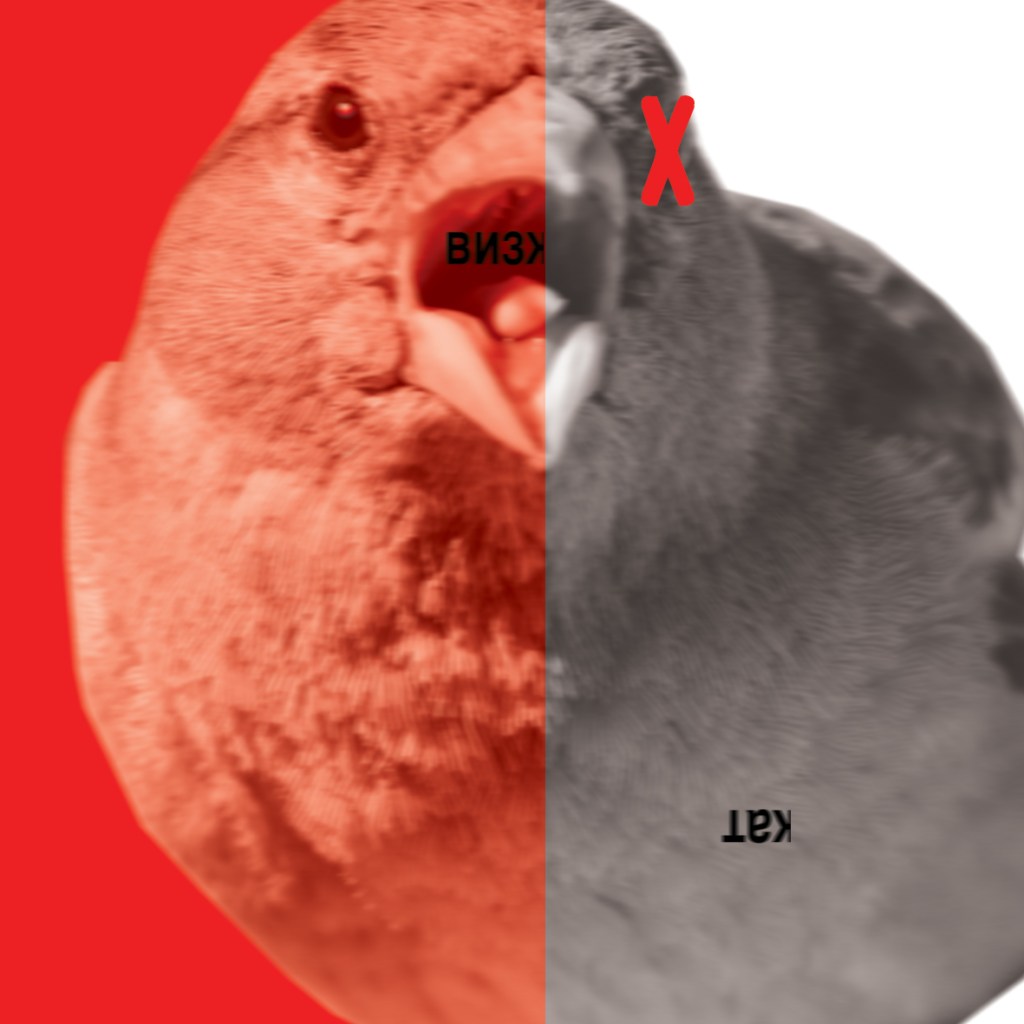 I used the same typeface (Russian) that I used in my previous design and I translated “squeal” into Russian to make it feel more authentic. The Sparrow has started to “squeal” until it is cut short and all the colour is gone and the life is taken away to leave black and white and half of the word “squeal” has dropped dead onto its back. I quite like the use of the red X on the birds eye to symbolize that the bird is dead but to also add contrast against the black and white.