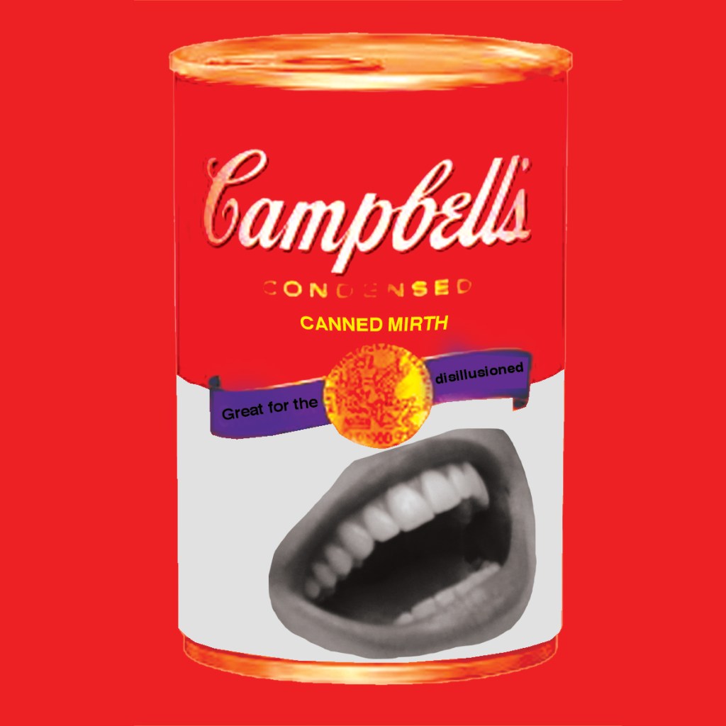The image that I initially conjured up in my head and initially sketched and the image I ended up creating were again very similar. I had the idea of an Andy Warhol style 1950s soup can with a cheesy smile on it and a sarcastic slogan about how it would help with depression or feeling disillusioned..