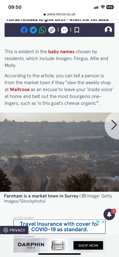 I did a bit of research into middle class living and a lot of the things that popped up online were to do with things overheard in Waitrose and the middle class families that shop there and buy middle class things such as avocados, cashmere toilet roll, all different kinds of nut milk, Quinoa etc.. to trick themselves into thinking they are much more elite than what they actually are!