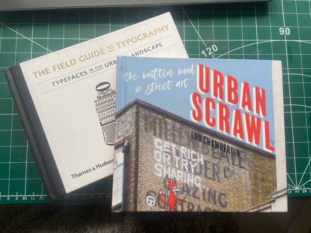 I also bought 2 books from Amazon which are very similar to that of which I wanted to create. One book is called “Urban scrawl” and concentrates more on showcasing graffiti hand lettered styles and the other book is called “The field guide to typography, typefaces in the urban landscape” which is like a bird spotting book of Graphic Design!- it shows examples of typefaces in the wild and then classifies them into what typefaces and era they are. I liked this idea and thought that I could potentially classify any typefaces that I found in the wild!