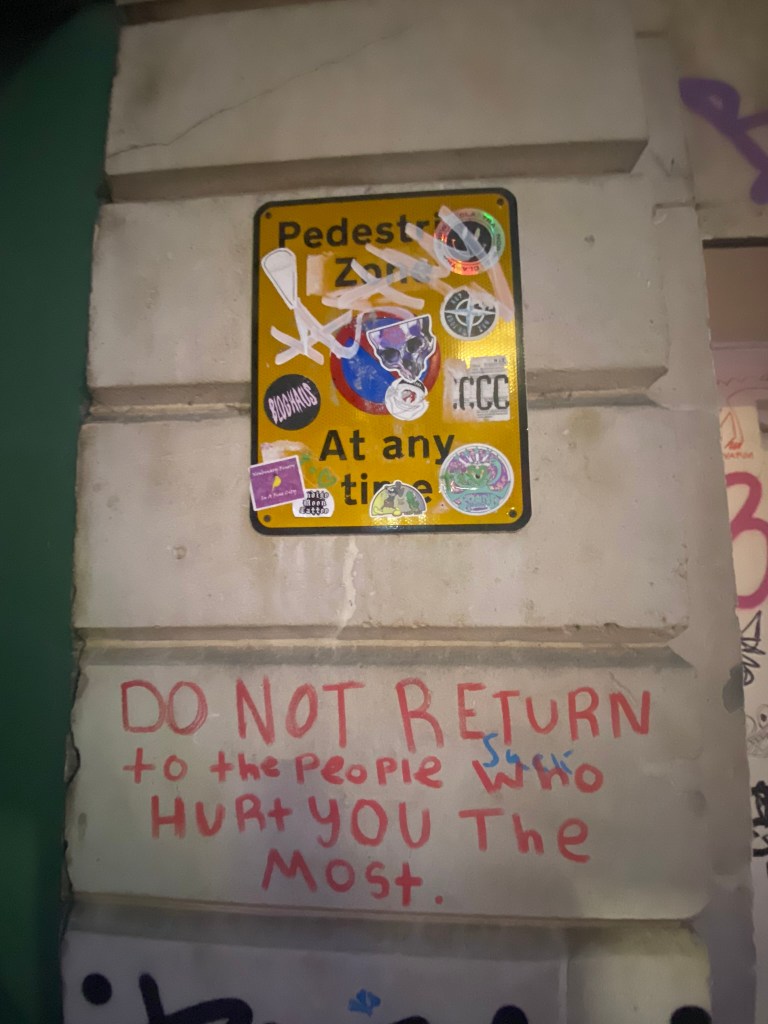 Another one of the quotes I found on a wall I included on this cover and in the book “Do not return to the ones who hurt you the most”, who would have thought you would read these little messages on a wall? Coming from someone who was once in a violent relationship I cannot relate more. It is hauntingly beautiful. The handwriting also had potential to be imported in and turned into a typeface..