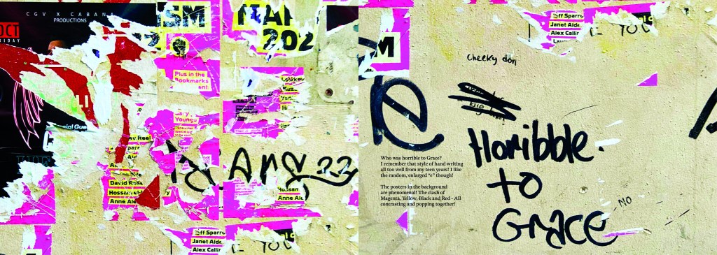 I wanted to include graffiti and street art in my book too as although these are not using typefaces, they are still a personal style and they are still hand lettered words with personal handwriting. There were many conflicting articles online that state that graffiti is not typography, I can see both arguments.. it is definitely not a traditional practice of typography but I wanted to concentrate on how insignificant ramblings or graffiti scriptures hand written on a wall can inspire a future digital typeface or fresh new designs.