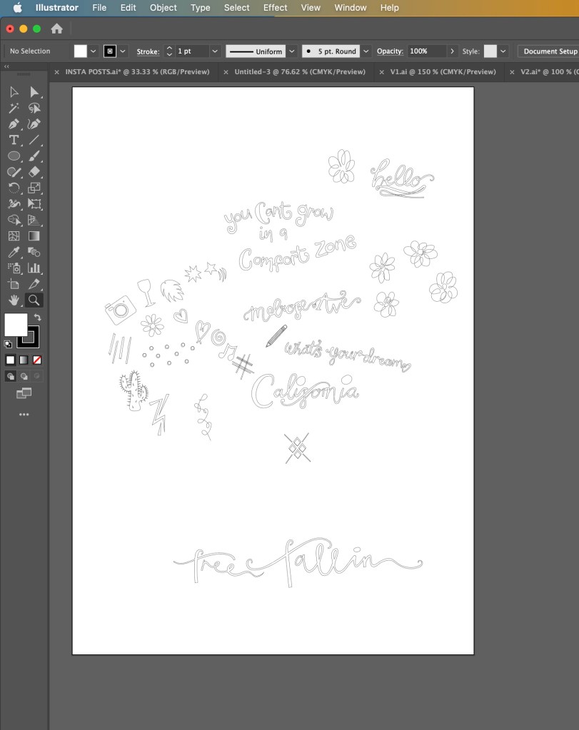 Pink Angeleno is very vector based, a lot of my work are illustrations that I have drawn and then created into Vector art using Illustrator so I knew that my work for this assignment would be the same.