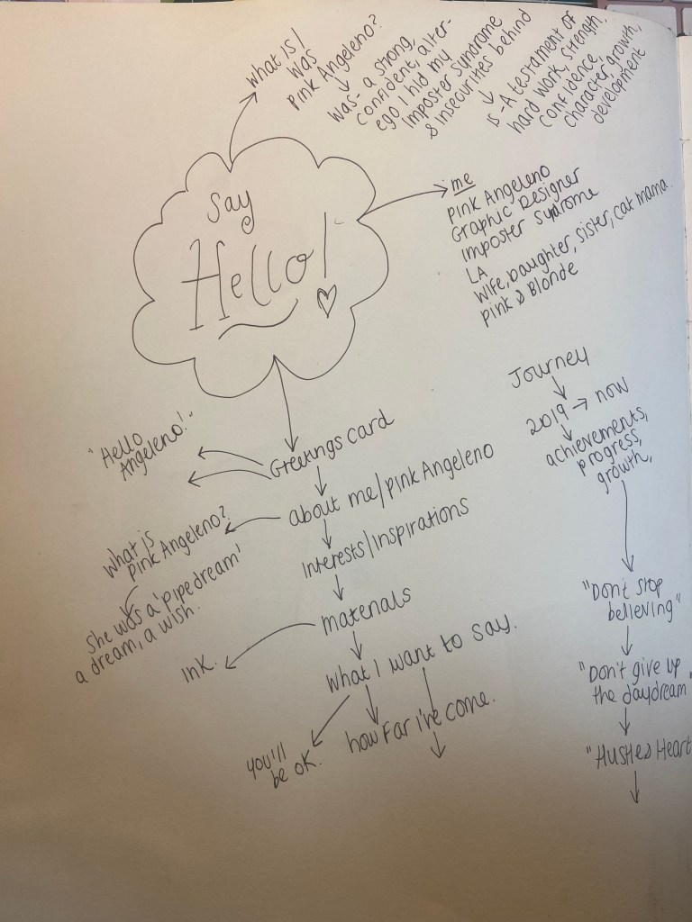 Once again, I turned to my sketchbook and started to sketch out little ideas that I feel sum up what Pink Angeleno stands for.