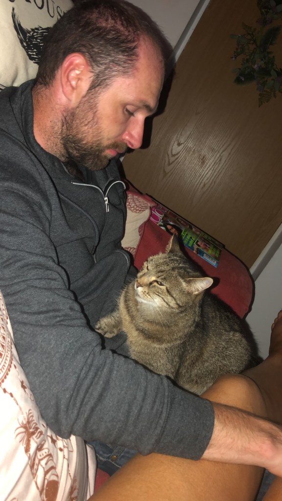 My family! My Husband Chris and our 2 beautiful moggies Tubby & Bridgette!