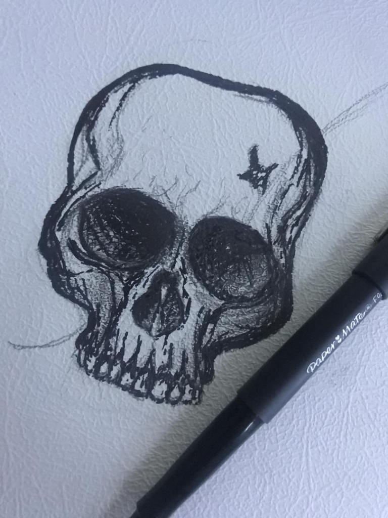 I have Pinterest (link below!) so I decided to have a look at different skull drawings and try to copy one off there!