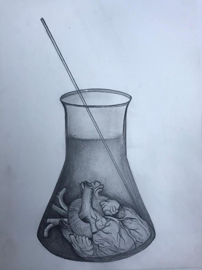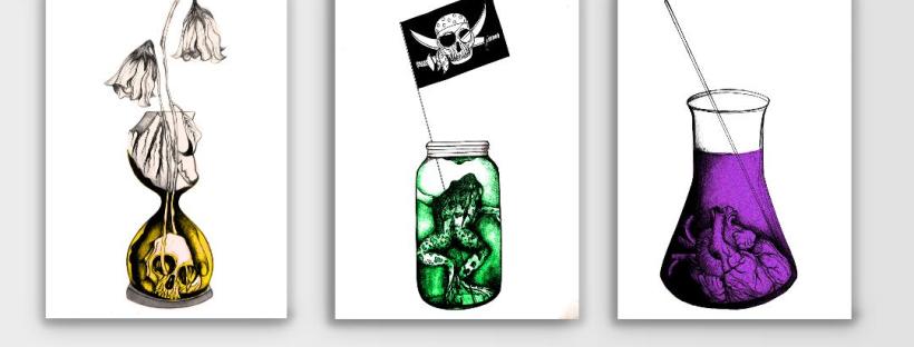 It is a socialist novel, HG Wells was trying to convey how easily it was to dupe people into a naive way of thinking. It is all about money and greed and selling a cheap product for ridiculous amounts. In the book the character referred to Tono Bungay as “The sickness at the heart of society” This is what I have played on within the design. I have used a human heart in a potion beaker to convey the heart in Tono Bungay.