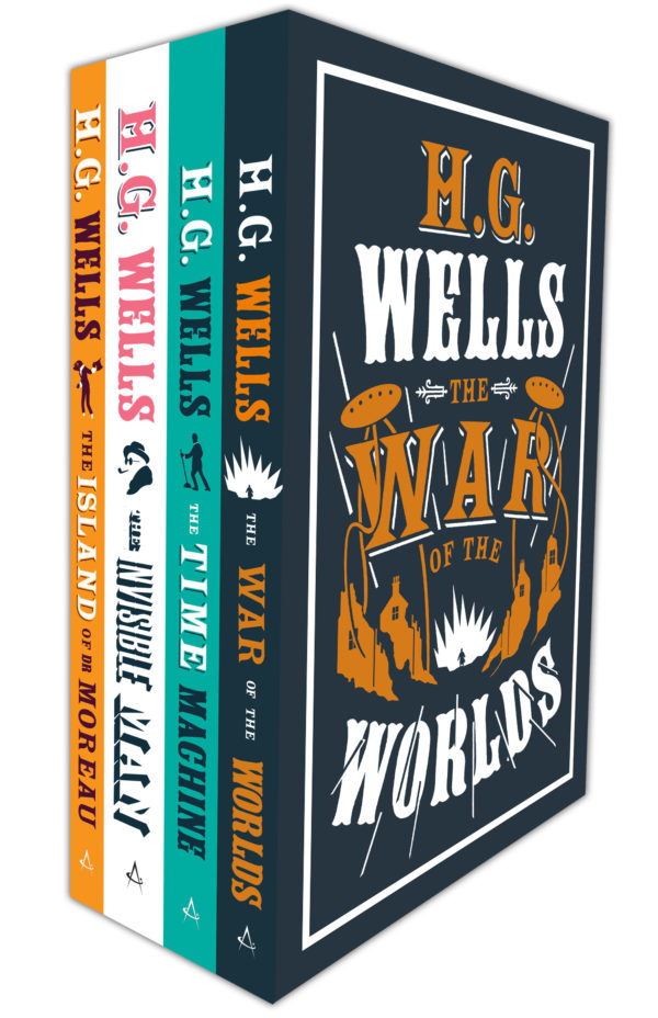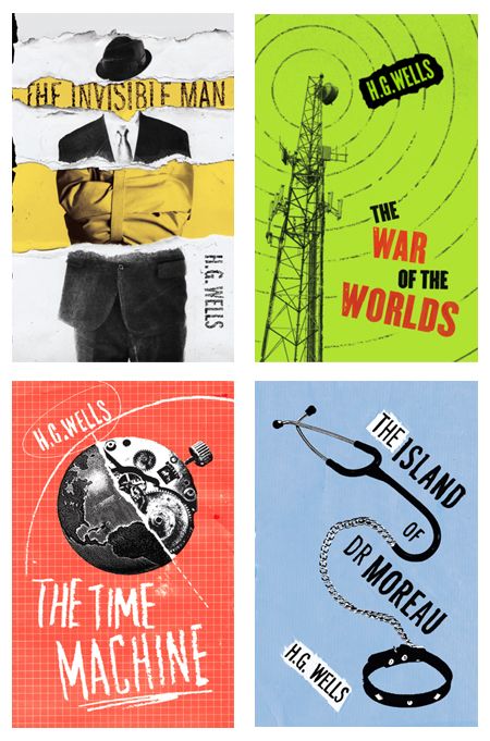 The photos above were sat alongside The war of the worlds. These show a set of 3 books. There is repetition in the designs; the typography, the layout and they all use 2 colours. They are bold, modern and stand out. These are more what I would have had in mind for HG Wells books. The style of writing and the typography they have used is like modern vintage, it is in an old style but made modern by the use of colour and placement on the cover. You can see that the books obviously follow on from each other.