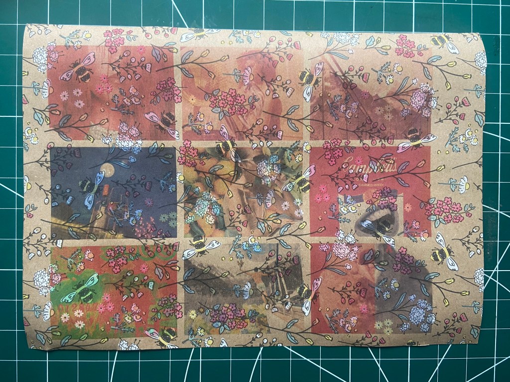 The wrapping paper, although it is very beautiful with its lovely Bee print, it didn’t go very well in the printing stakes.. it suffocates and smothers my images. I think it would be ok to layer over the top of solid colours and black and white images possibly but definitely not for these!