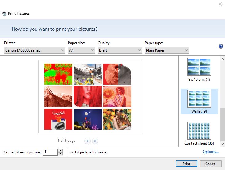I can then print all the images onto one page and print them all onto different paper sources to see what each image looks like as supposed to picking certain images for certain media.