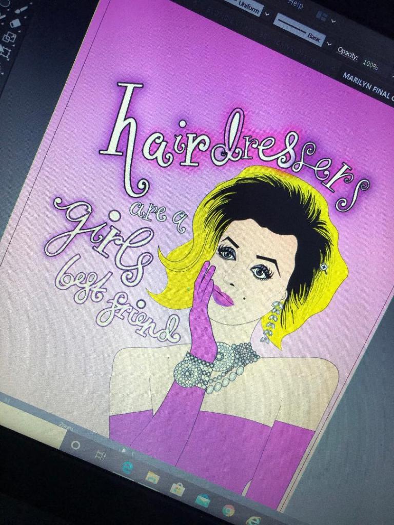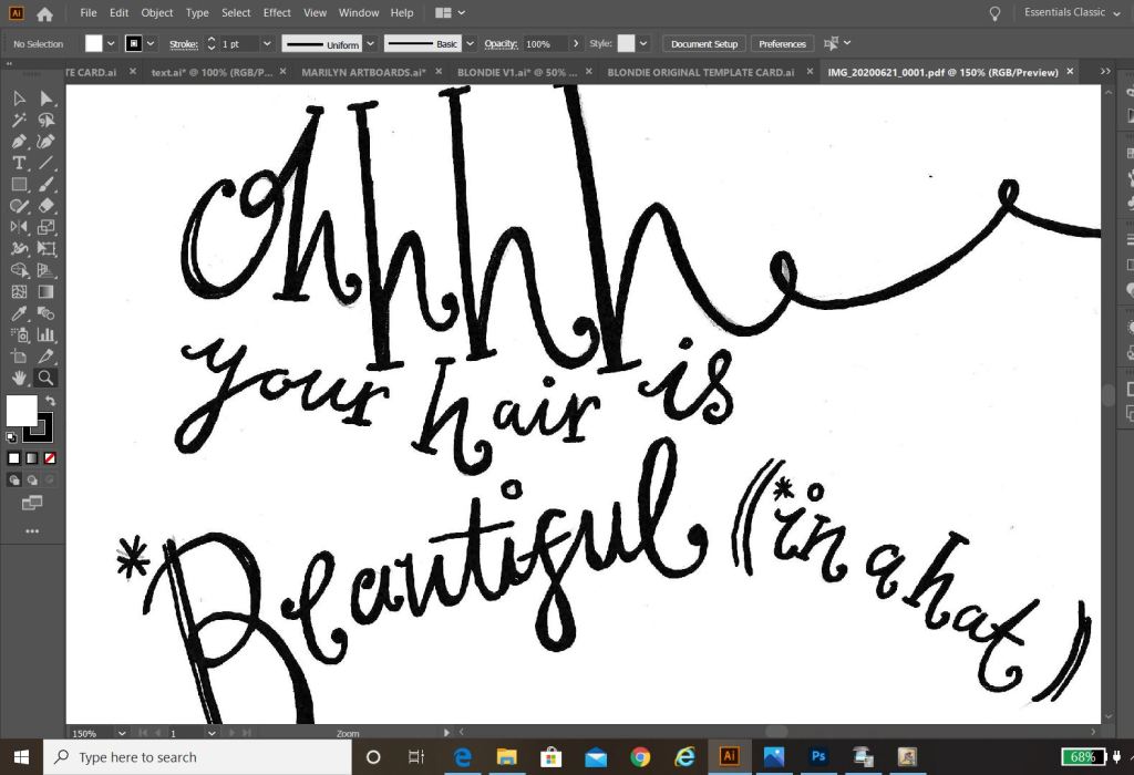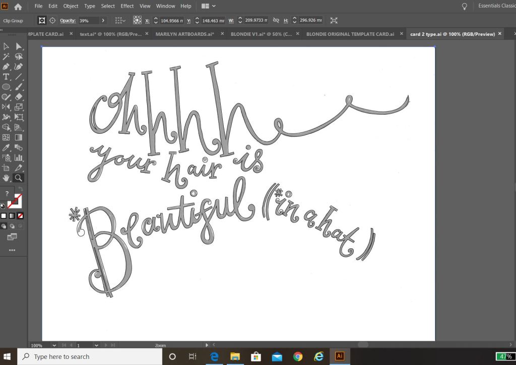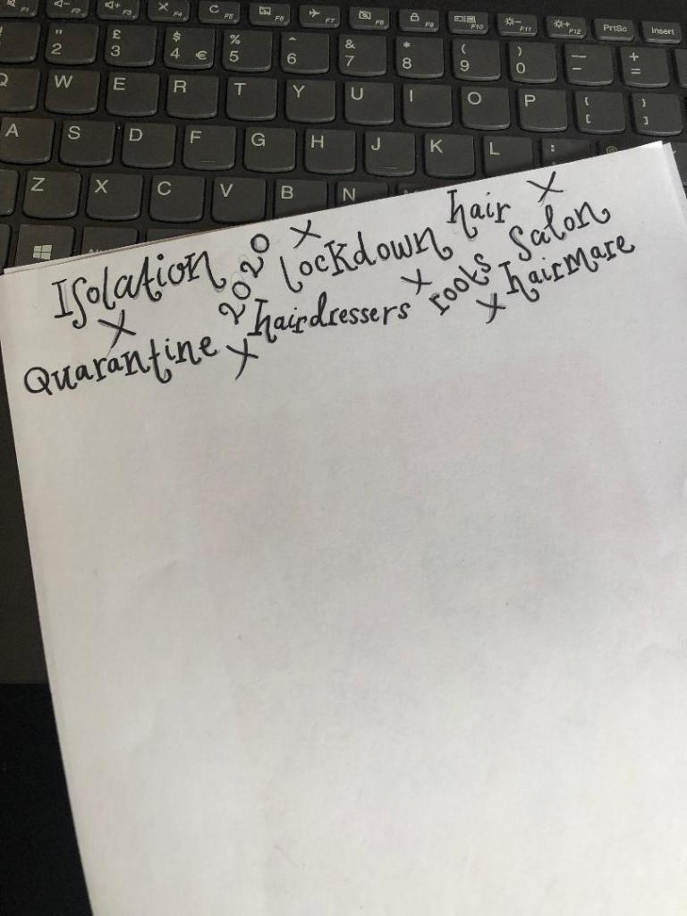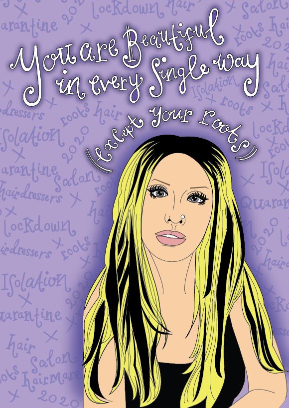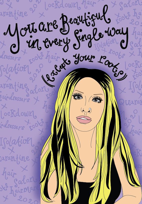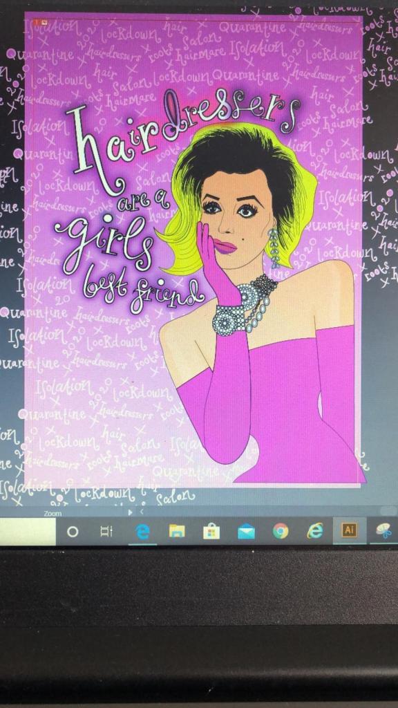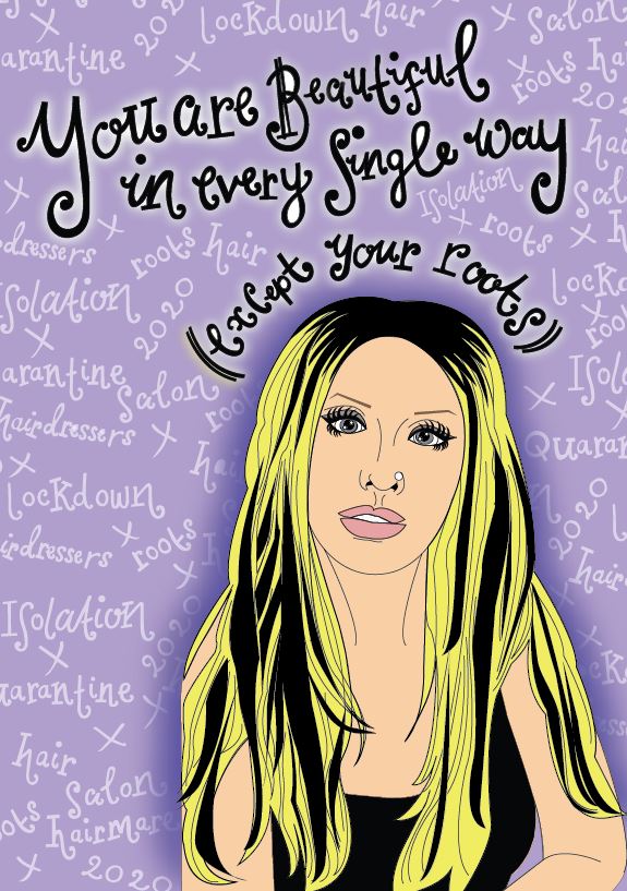 Again, just like I did for the main text of the cards I drew out by hand the lettering for the background text and then imported it into illustrator to trace around. I chose to use the words: lockdown, Quarantine, roots, salon, hairdresser, 2020, hairmare, isolation and hair. I felt that these words best summed up the lockdown hair nightmare best!