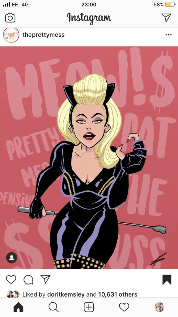 This image above again I found on Instagram; what is relevant about this post is that they have used Dolly Parton as the main focus on some postcards who is one of the blonde icons I had in mind for using on my own designs.